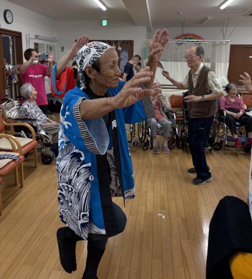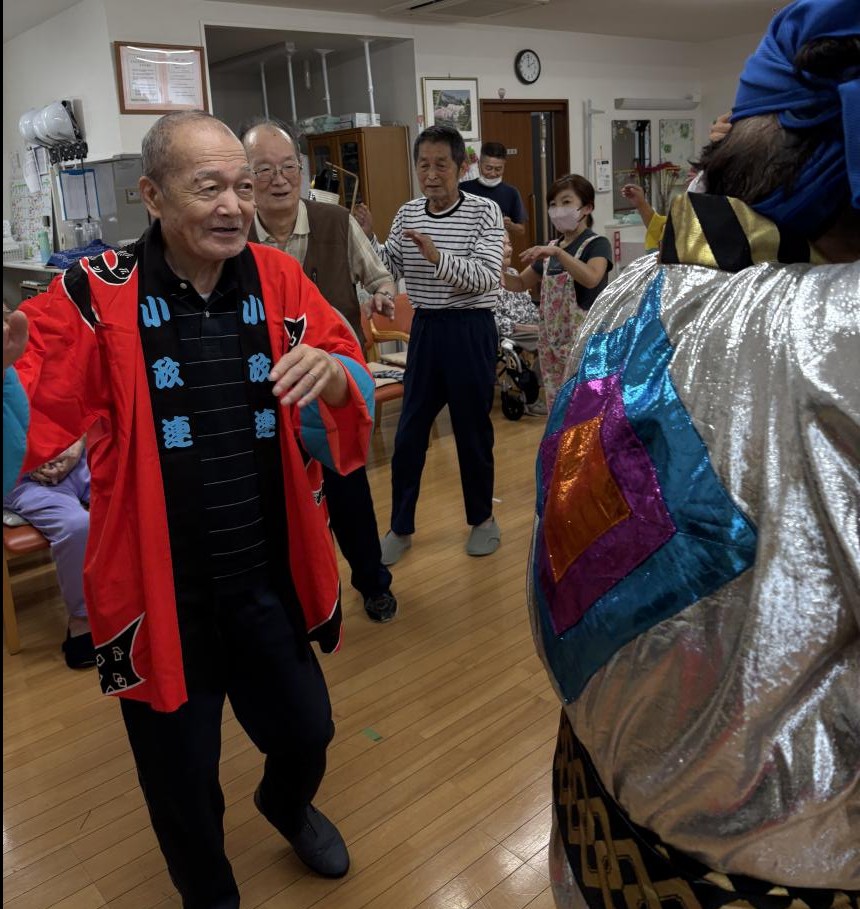 だんだん利用者さんが笑顔になってきて、阿波踊りの楽しさ伝わっていただければ、嬉しいです。
